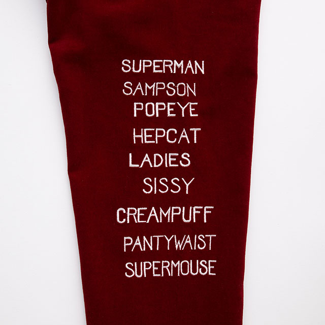 チカラくらべマシーンの「TEST YOUR STRENGTH」をモチーフとした大胆な刺繍を両袖施したワークジャッケット。