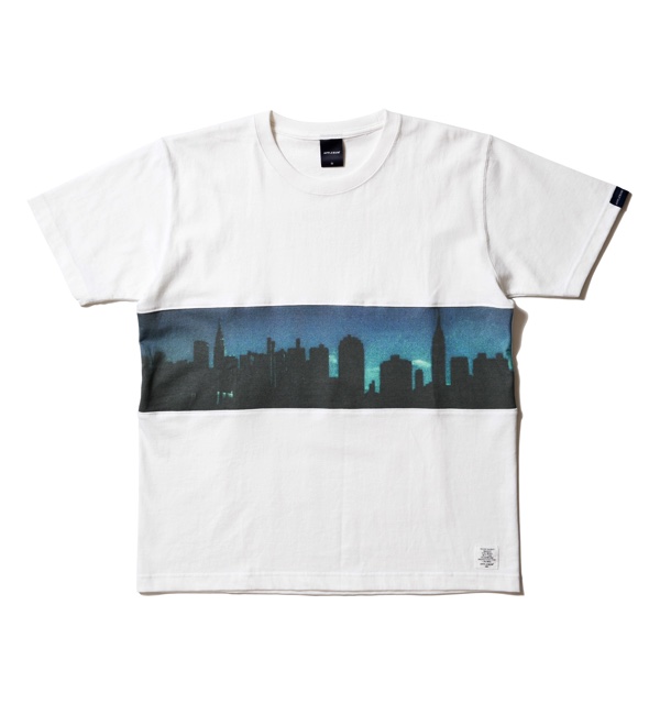 NYのビル群のシルエットと美しい空のグラデーションの “CITY”柄の切替Tシャツ。