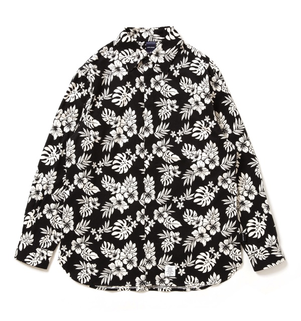 黒と白の2色で仕上げた存在感ある比翼タイプの花柄シャツ。