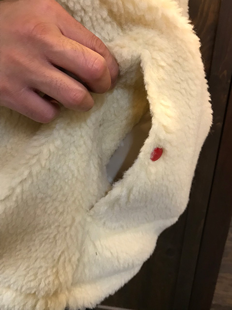 ↑ボリュームのある羊毛のようなボア素材にファー付きのフードを付けたアノラックパーカ。保温性は抜群!