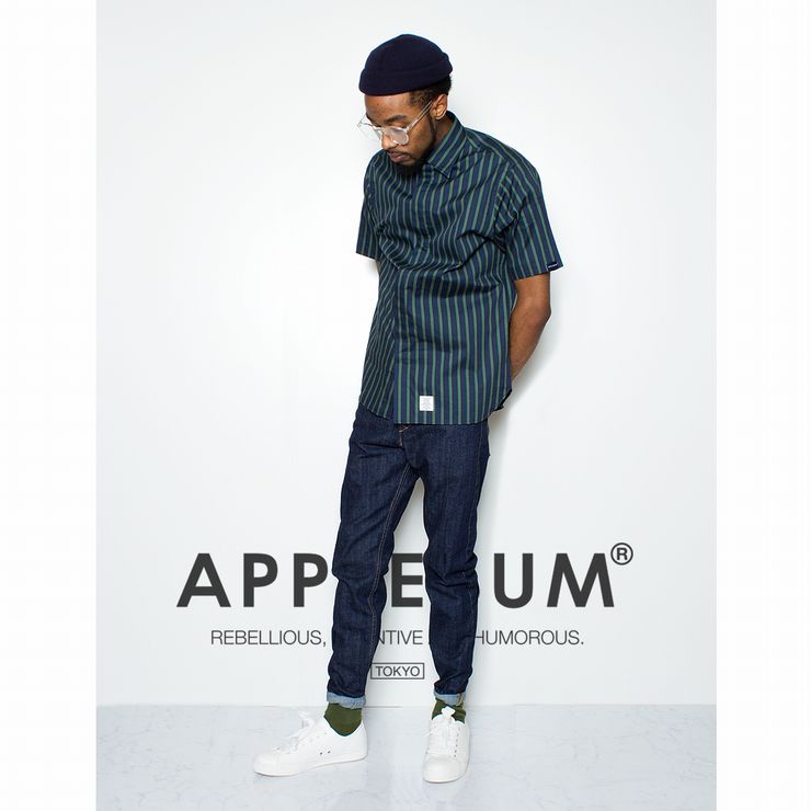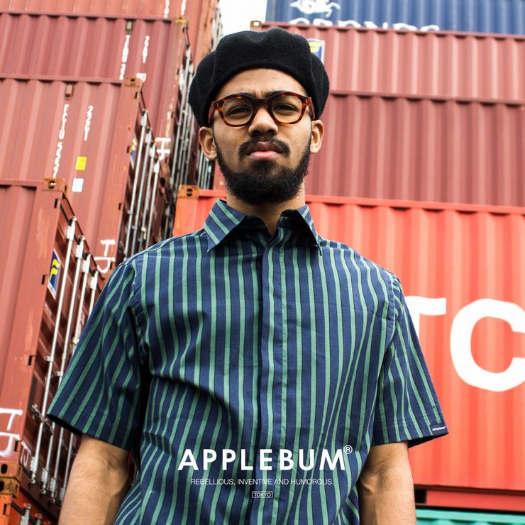 APPLEBUM(アップルバム)Stripe Fly Front SS Shirt [Navy]