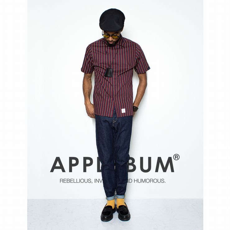 APPLEBUM(アップルバム)Stripe Fly Front SS Shirt [Burgandy]