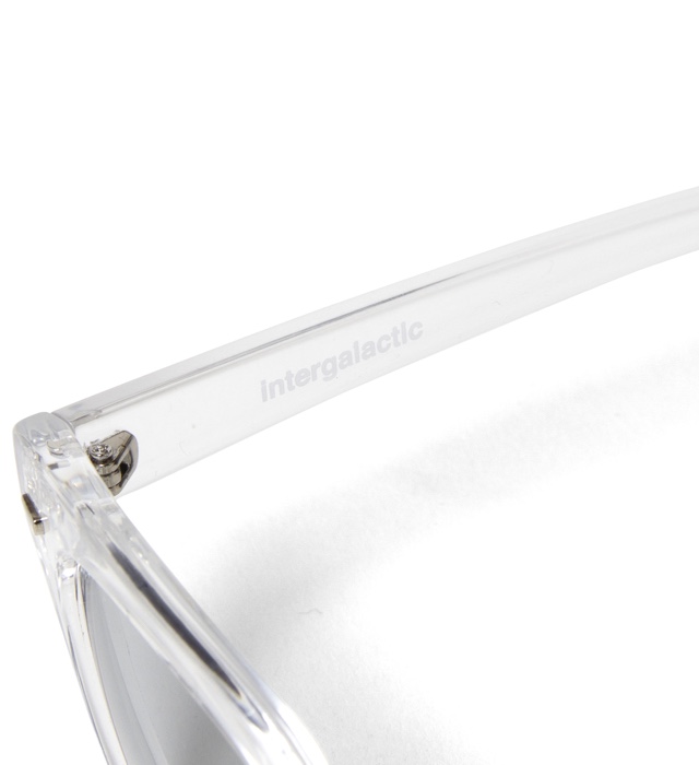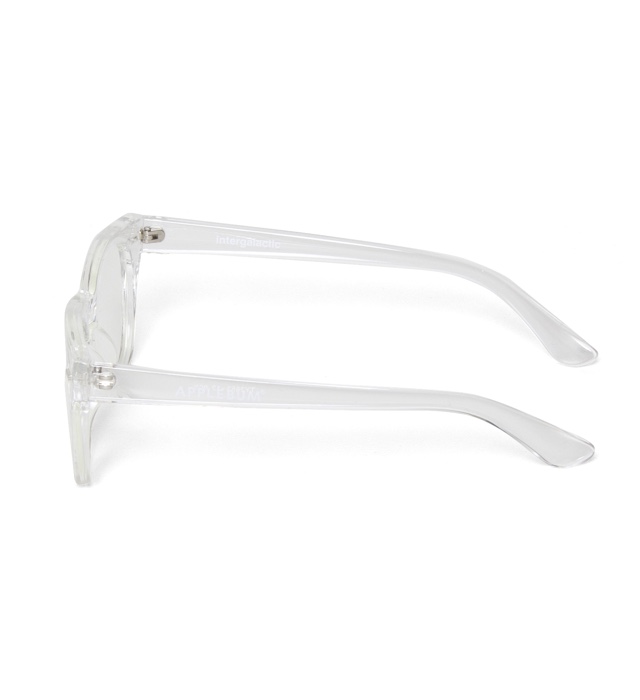 形はベーシックで使いやすいウェリントンタイプ。 左テンプル外側にAPPLEBUMロゴをプリントし、右テンプルの内側にモデル名 の「intergalactic」の文字をプリントしました。
