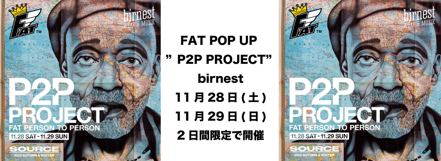 FAT POP UP ”P2P PROJECT” birnestにて、11月28日(土)・11月29日(日)の2日間限定で開催