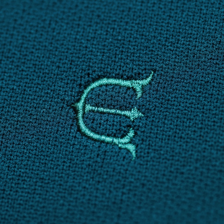 胸にはEロゴ刺繍、内側から重ねたエルボーパッチには、