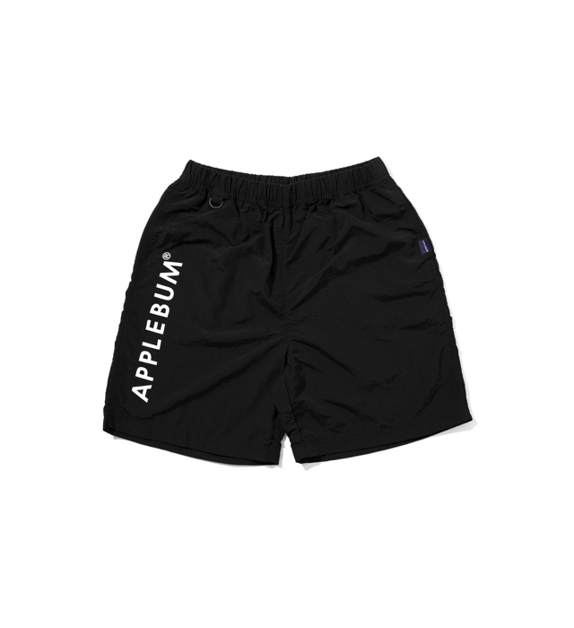 ロゴを大胆に太腿部分に落としこんだナイロンショーツ。