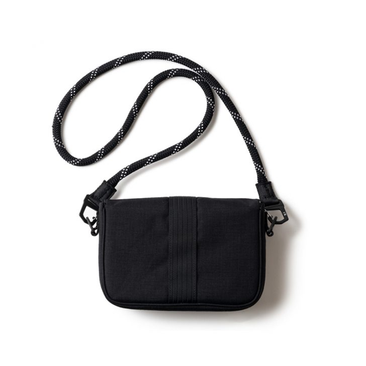 両ブランドのロゴをプリントした便利なサイズ感のマチ付きサコッシュ。