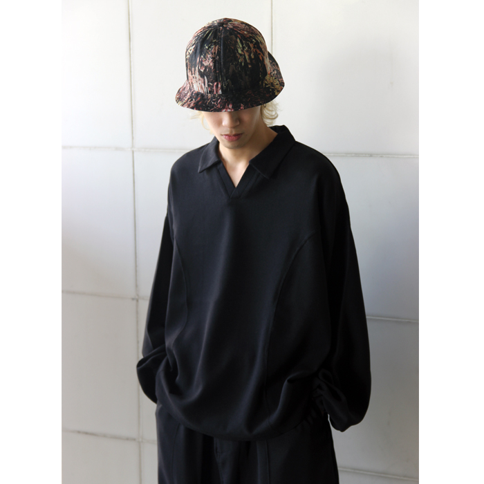 カノコの様なザラつきのある表面感が気持ち良いロングスリーブの開襟プルオーバーシャツ。