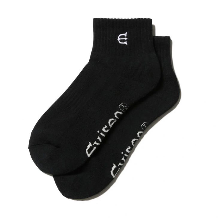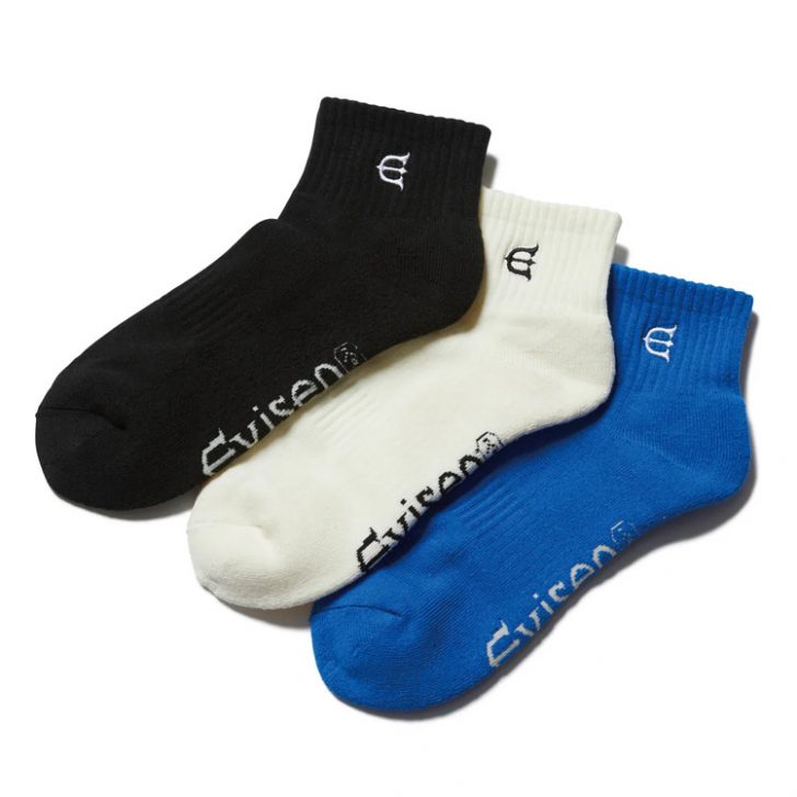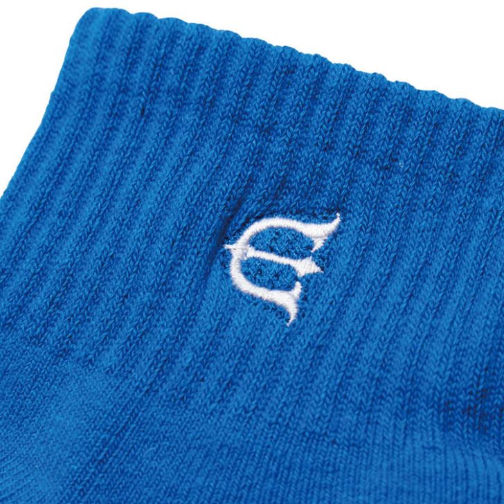リブ部分にEロゴのワンポイント刺繍を入れたアンクル丈ソックス。