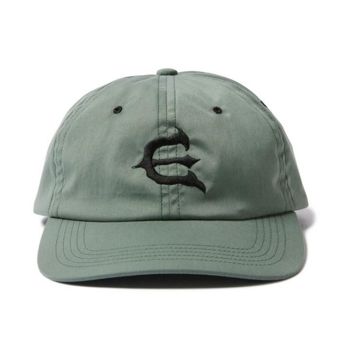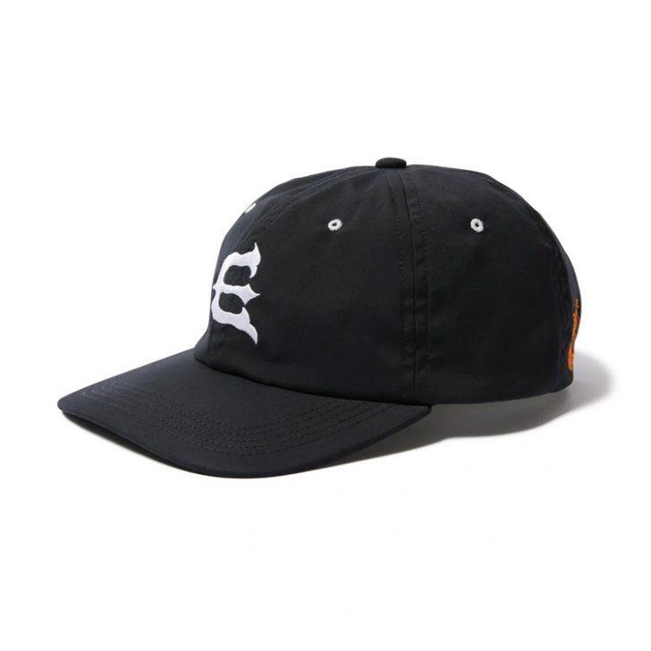 フロントの歪んだ Eロゴと、サイドパネルの酔っ払ったニコちゃん刺繍がポイント。