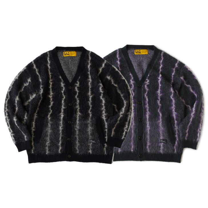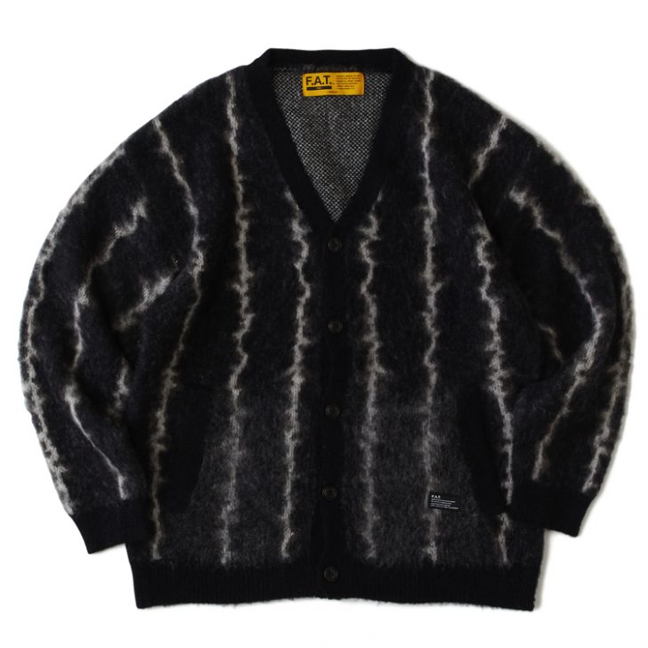 絶妙なカラーリングのランダムストライプパターンが印象的なモヘアカーディガンは、肩幅やアームまわりを大振りにすることにより、リラックスシルエットを実現した1枚。