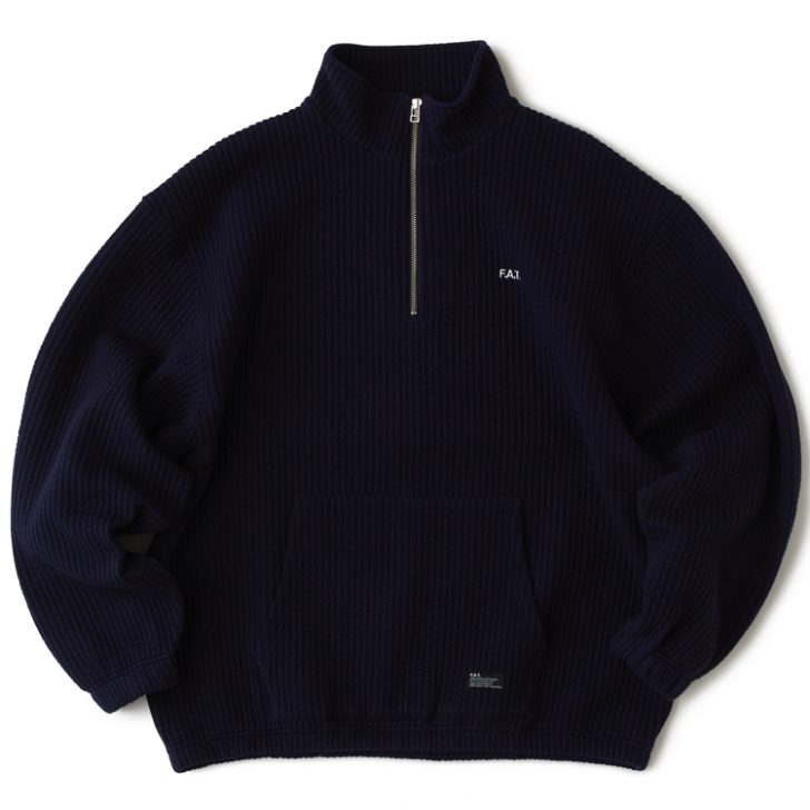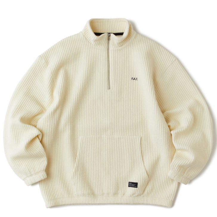中綿入りのカット素材を使用することで、独特な暖かみのある仕上がりになったハーフジップスウェット。