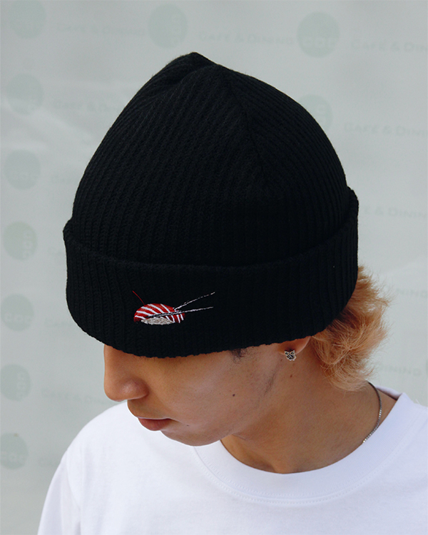 スシ刺繍入りビーニー。 クラシックなシルエットです。 アイコニック!