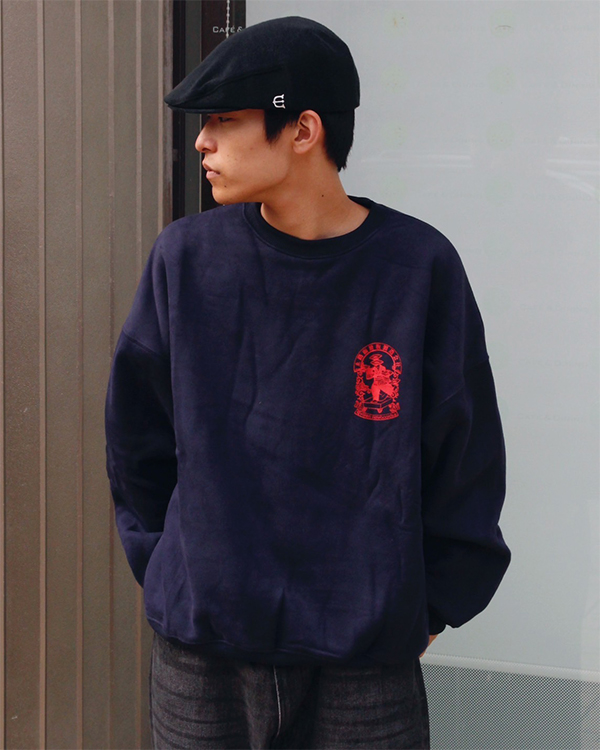 オリジナルボディに進化したクルーネックスウェット。やわらかな10.5 ozの裏起毛素材を使用した程よくワイドなシルエット。左胸と背中に、EMBLEMグラフィックをプリント