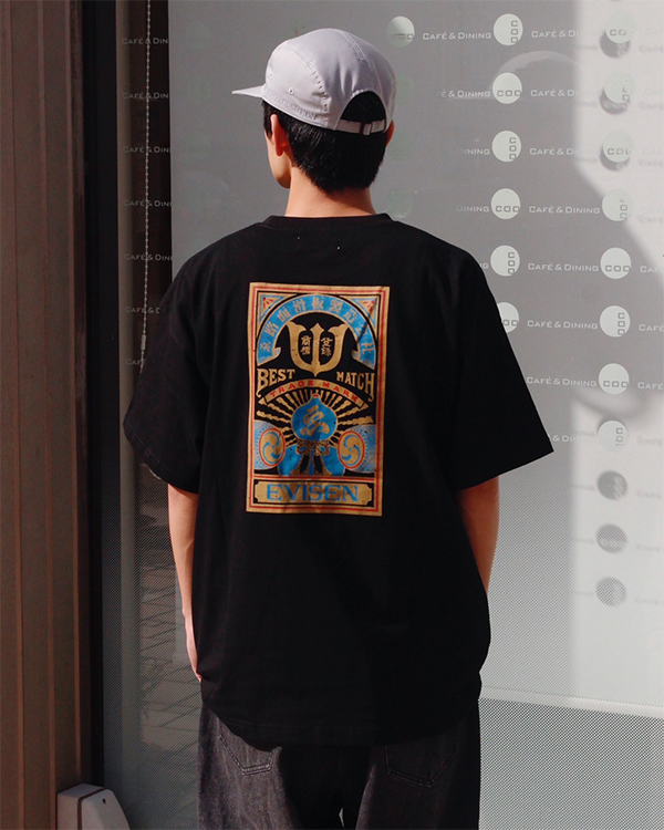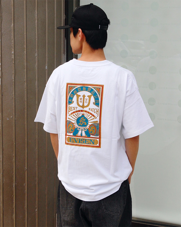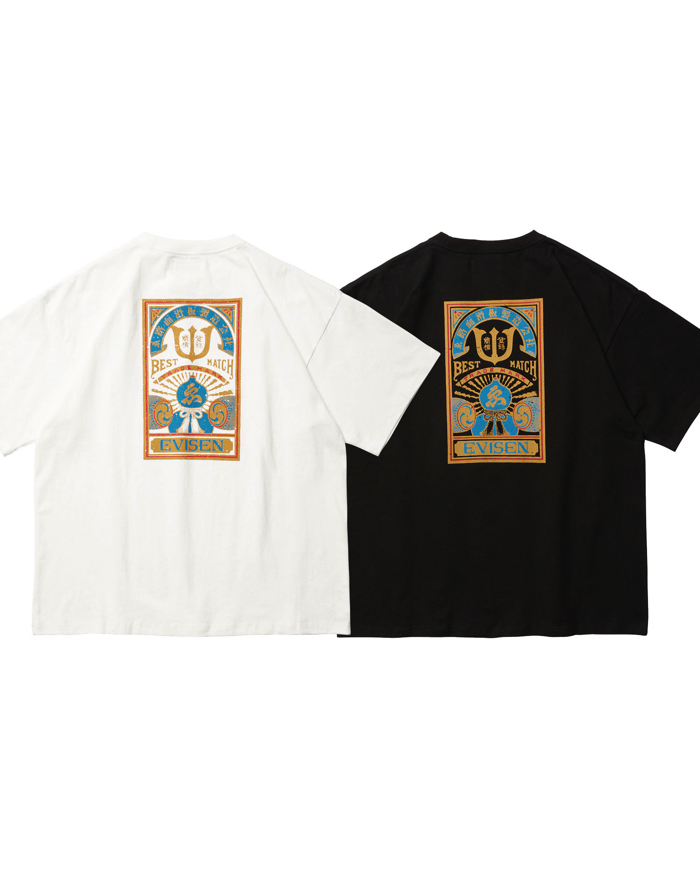 オリジナルボディに進化したTシャツ。7.7 ozのコットンを使用。程よくワイドなシルエット。MATCH 2 グラフィックを左胸には1色、背中には3色でプリント。