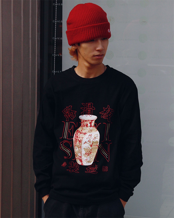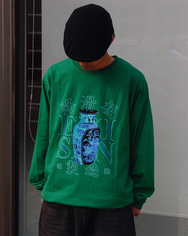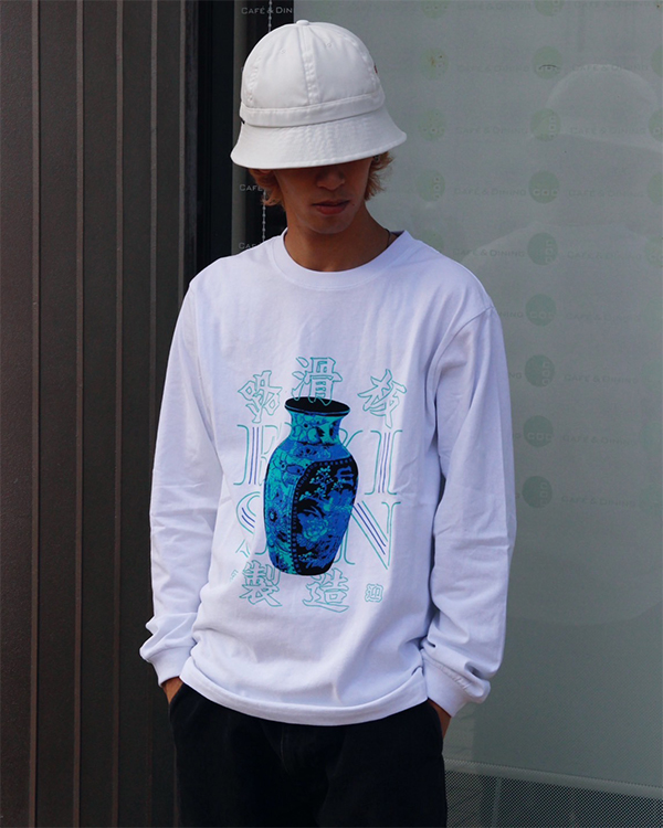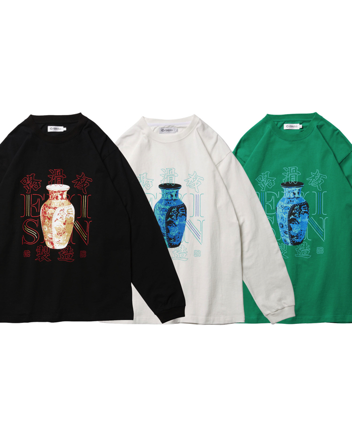 オリジナルボディに進化したロングスリーブTシャツ。7.7 ozのコットンを使用。程よくワイドなシルエット。VASE LOGOグラフィックをフロントにプリント。