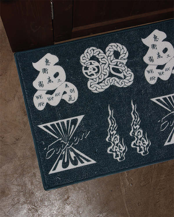 5つのEvisenアイコンロゴを落とし込んだラグマット。