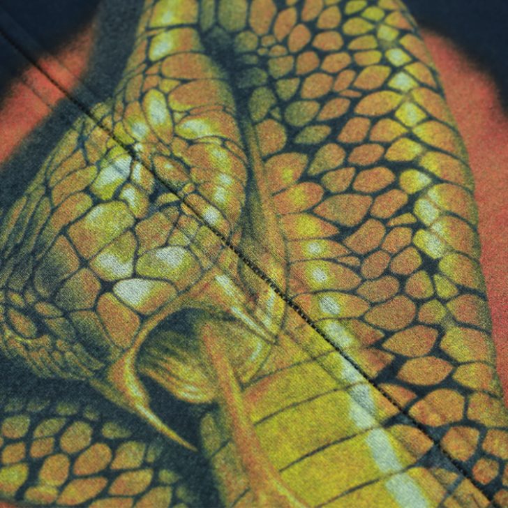 ファンタジージッププラーとスクリプトロゴの刺繍。