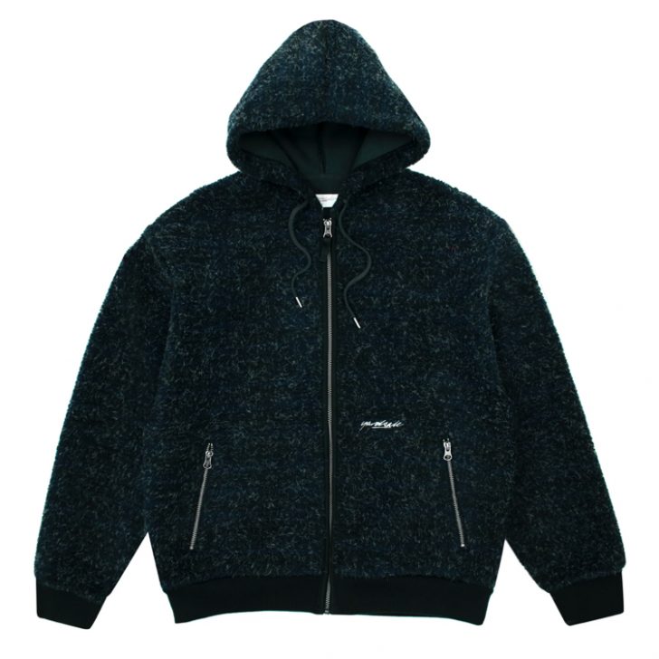 Phantasy zip puller and script logo embroidery.