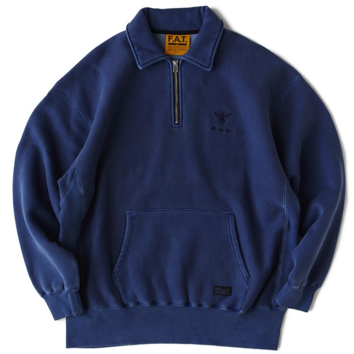 絶妙な色合いとアタリ感が印象的なピグメント加工を施したハーフジップスウェット。