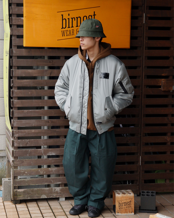独特の光沢感が特徴的なシャンブレーツイル素材を使用したMA-1ブルゾン。