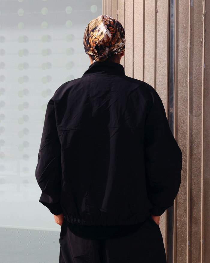 曲線の切り替えデザインが入ったナイロントラックジャケット。
