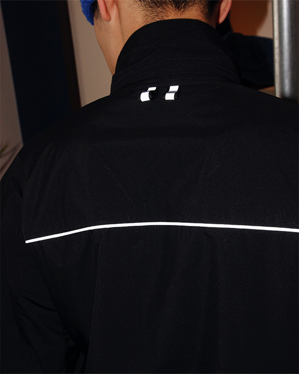 背中は襟元にリフレクターテープ付き。