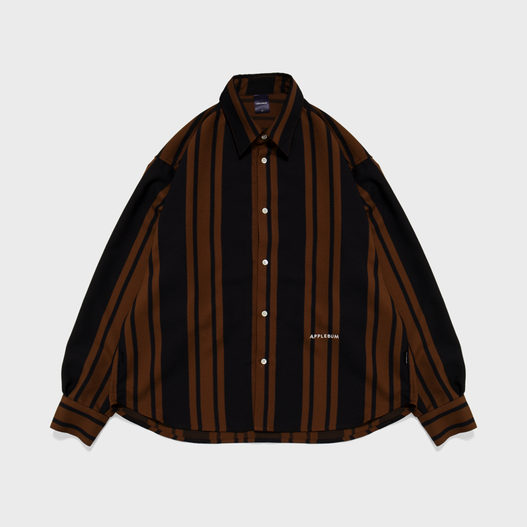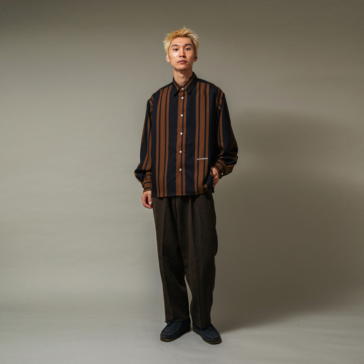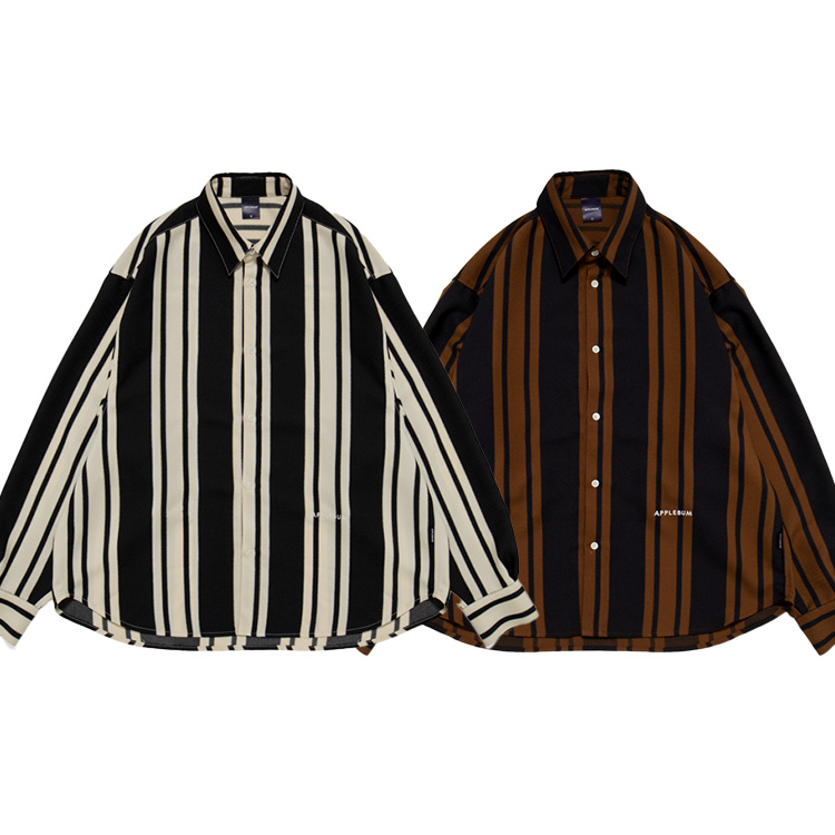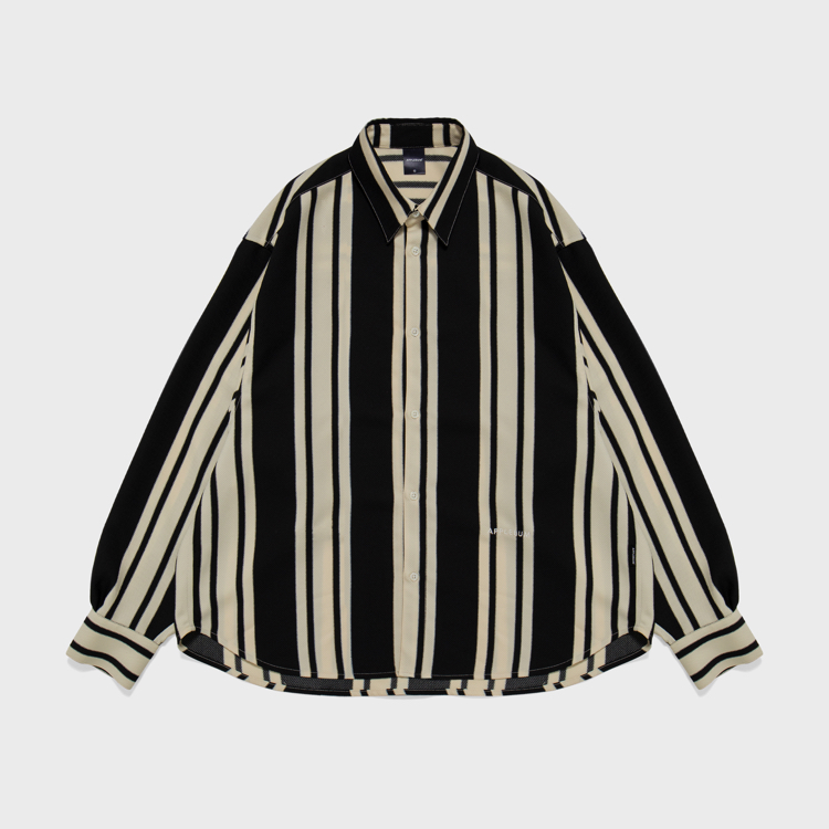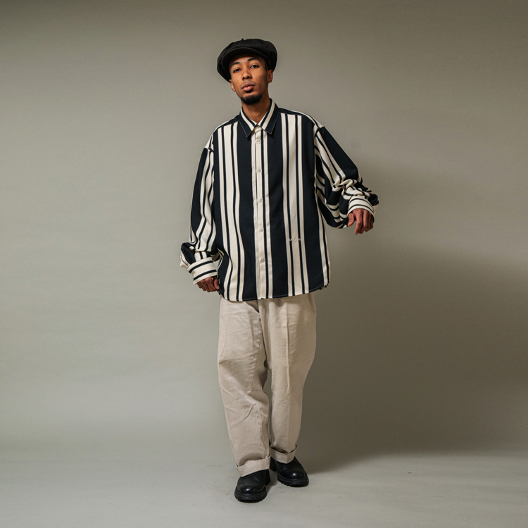 ランダムなストライプ柄が特徴のオーバーサイズシャツ。