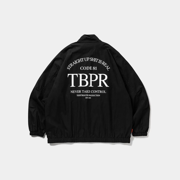 ストレイトアップを背中に大きくプリントしたスウィングトップ。