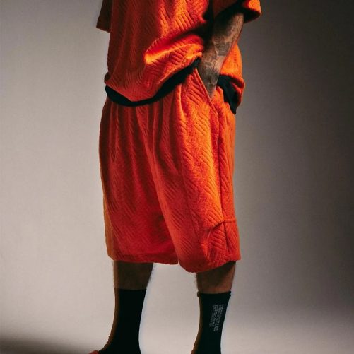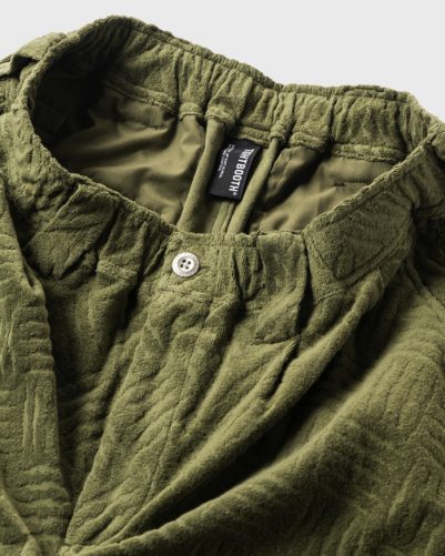 ストリートスケート時にセクションとして使用するチェッカープレート(縞鋼板)柄をパイルジャカードで表現したオリジナル生地のショートパンツ。