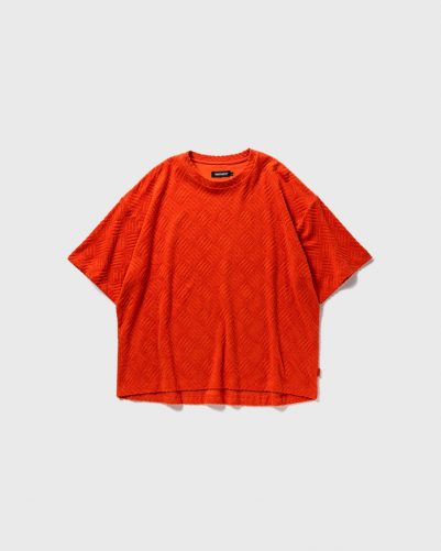 ストリートスケート時にセクションとして使用するチェッカープレート(縞鋼板)柄をパイルジャカードで表現したオリジナル生地のカットソー。