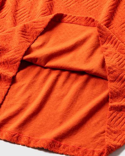 ゆったりとしたシルエットで、身頃の丈は後ろ中心に向かって僅かに長くなるデザイン。