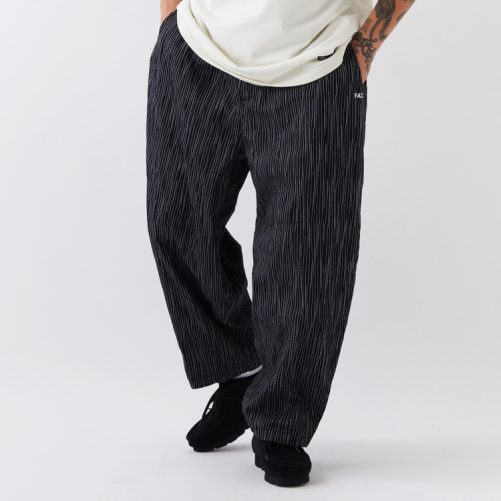 独特な表面感とストレッチ性が印象的なタックドビー素材を使用したワイドイージーパンツ。股上を深くし、渡りを広くとることによりヒップから膝にかけてボリュームを持たせたワイドテーパードシルエットが魅力。穿き心地の良さはもちろんのこと、Dリングを備えキーホルダーやカラビナを装着可能。フロントのロゴ刺繍とバックのブランドネームがさり気なく主張してくれる。