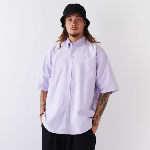 通常よりも身幅・肩幅にゆとりをもたせたBIGシルエットが印象的な半袖ボタンダウンシャツ。目の詰まった肉厚なオックスフォード素材を使用しボタンサイズを統一することで、よりユーティリティー性の高いアイテムに。ルーズになりすぎないレングスや袖まわりはボリュームのあるボトムスを合わせていつもとは違うカジュアルスタイルを楽しみたい。胸刺繍や裾に隠れたブランドネームが程よいアクセントに。