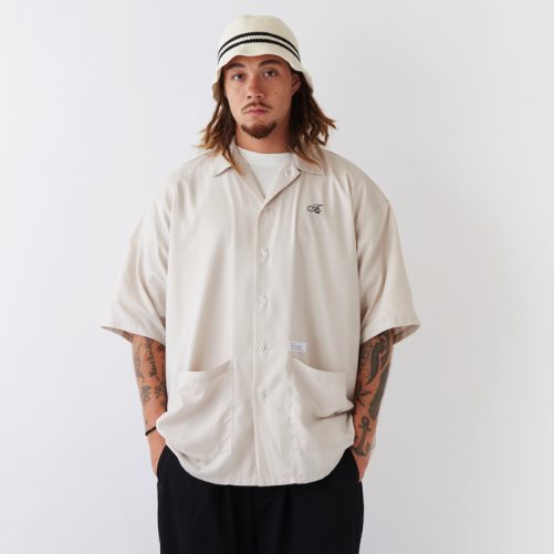 独特な表面感とストレッチ性が印象的なタックドビー素材を使用した、通常よりも身幅・肩幅にゆとりをもたせたBIGシルエット半袖シャツ。ルーズになりすぎないレングスや袖まわりはボリュームのあるボトムスを合わせていつもとは違うカジュアルコーディネートを楽しみたい。袖のロゴ刺繍や裾に隠れたブランドネームも程よいアクセントに。