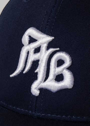 ABロゴマークを左胸にワンポイント刺繍した定番Tシャツ。