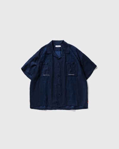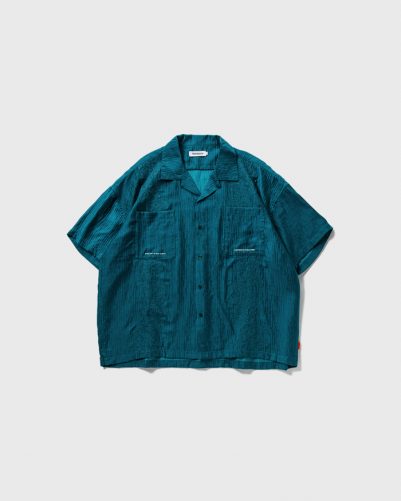 ケシの花柄刺繍を両身頃に施した開襟シャツ。