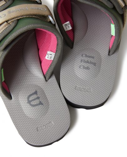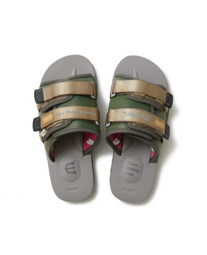 SUICOKEの代表的なモデルの一つ『MOTO』をECO素材で仕上げた『MOTO-Cab-ECO』をベースにしたトリプルコラボサンダル。