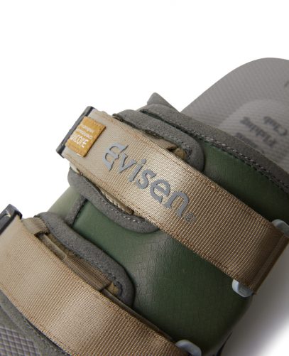 SUICOKEオリジナルのフットベッドとミッドソールはバイオマス素材を、アウトソールにはVibram社の「ECOSTEP」を使用。 EvisenとChaos Fishing Clubのロゴも入ったアッパーのストラップでフィット感の調整が可能。