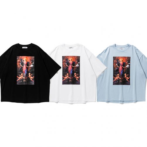 アーティスト・高岡周策氏のコラージュ作品をインクジェットプリントした定番のビッグシルエットT-shirt。