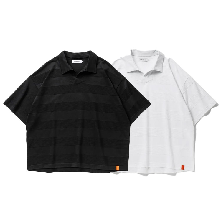 半導体をイメージしたオリジナルグラフィックの開襟シャツと編みでボーダーを表現した生地を使用したポロシャツが登場。