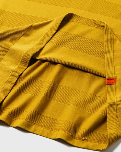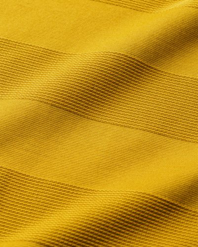 リサイクル原料のコットンとポリエステルを使用して編まれたCOOLMAX®糸は吸水速乾性、UVカット効果があり、洗濯機洗い可能な高機能&イージーケア素材。