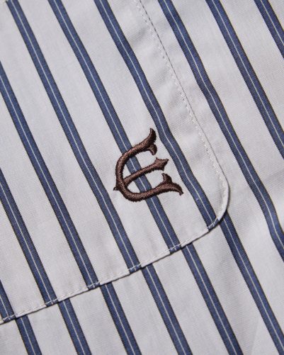 左胸の柄合わせされたパッチポケットにはいつものEロゴ刺繍。