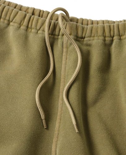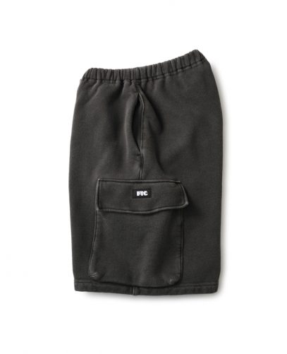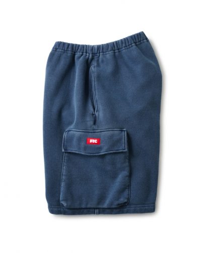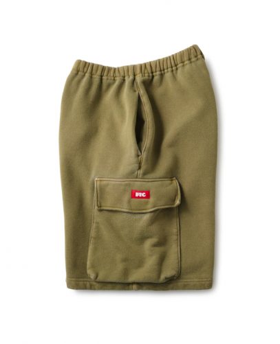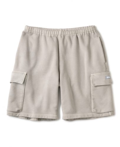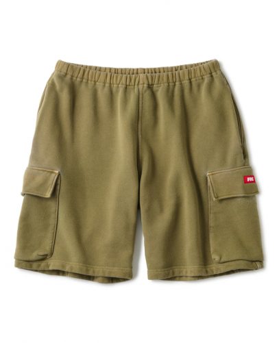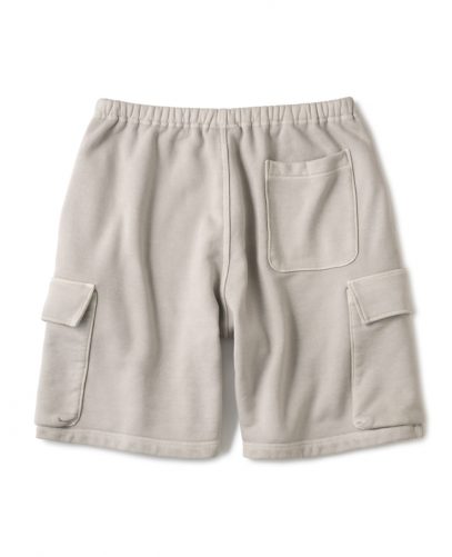 オリジナルのヘビーオンス裏毛スウェット生地を使用し、ピグメントダイ加工を施したカーゴショーツ。