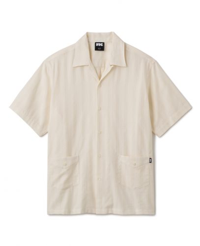 カラミ織りと呼ばれる特殊織り機によって作られた、メッシュ状にストライプを配したコットン素材を使用したグアヤベラシャツ。