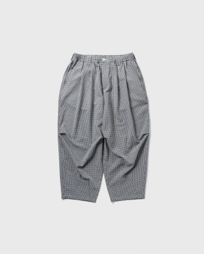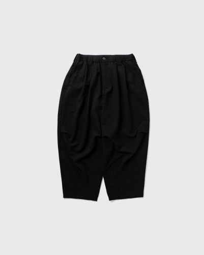 裾を狭め、膝のタックで立体感とゆとりを加えたワイドシルエット。