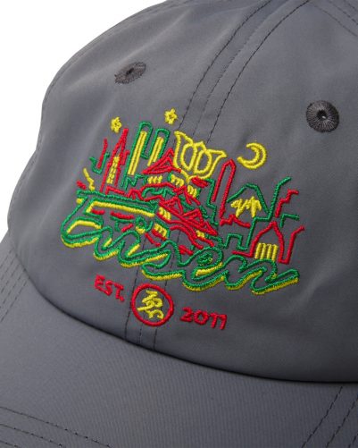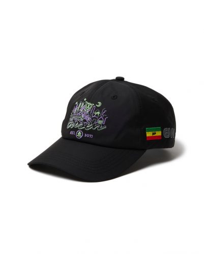 定番の6パネルキャップに新作グラフィックを刺繍で落とし込みました。