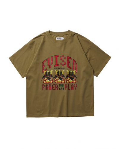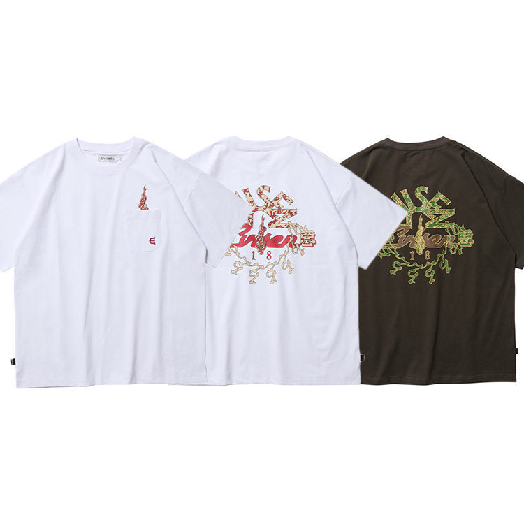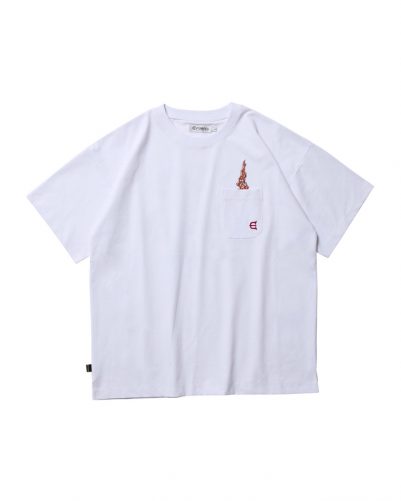 左胸のEロゴ刺繍入りポケットの下にはEYEファイヤーグラフィックをプリント。