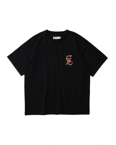 前身頃の左胸とバックにスタンプ風新作グラフィックをプリント。