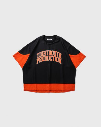 フロントにカレッジロゴ風のブランドロゴグラフィックを大きくシルクプリント。